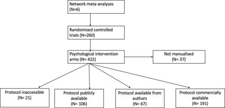 The researchers’ goal was to assess whether treatment protocols or manuals used in these studies were accessible and, if so, whether they were publicly or commercially available.